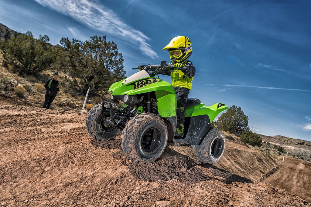 The KFX50 is the kid sized ATV that will bring them years of fun and provide a safe learn-to-ride environment.