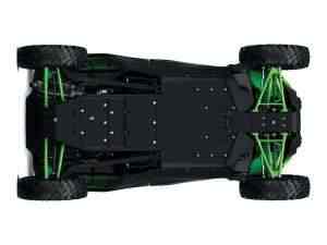 Undercarriage is covered by highly durable skid-plates, with key components protected by steel pieces, adding to driver confidence.