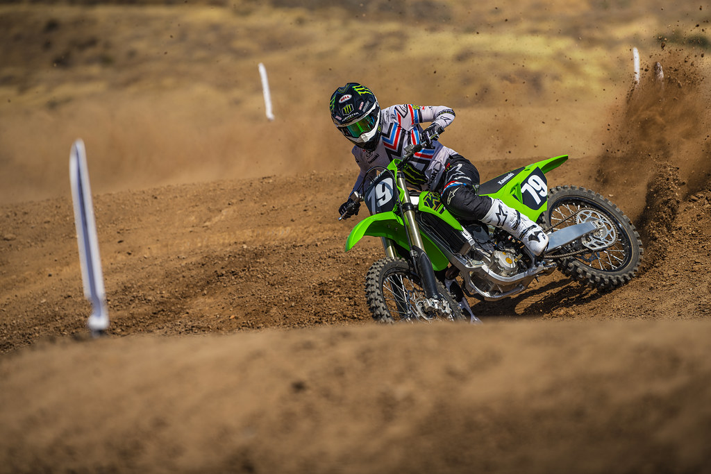 - Revised, KX450-based frame and KX450 Swingarm offer improved handling and increased rear wheel traction.