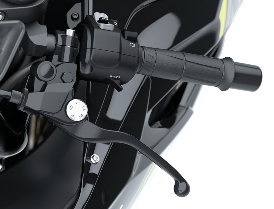 Assist & Slipper Clutch race-inspired clutch technology offers both a back torque limiting function as well as a light feel at the lever, KQS (Kawasaki Quick Shifter) Standard-equipment quick shifter allows clutch-less up-shifts, adding to sport riding fun.BRIDGESTONE'S LATEST SPORT TYRES: LIGHTER HANDLING, INCREASED GRIP