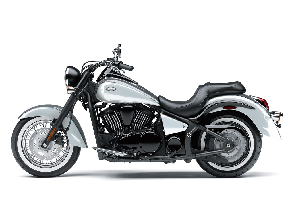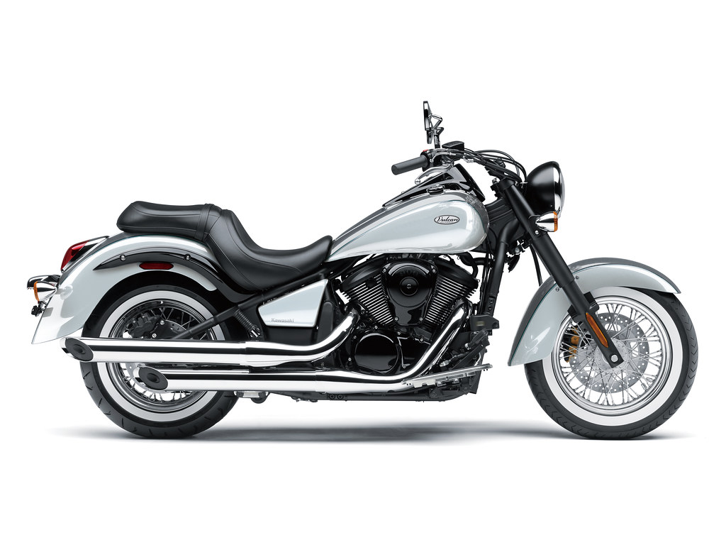 The name may be Vulcan 900 Classic, but you should hear "definitive" This midsized cruiser has the timeless goods wrapped in a long, low package with a presence that's larger than its name. From stylish paint scheme to its spoked wheels, this Vulcan garners attention wherever it goes. Details, like rider floorboards and tank-mounted instrumentation that includes a handy fuel gauge and an easy-to-read analog speedometer, only strengthen the bike's ties with tradition.