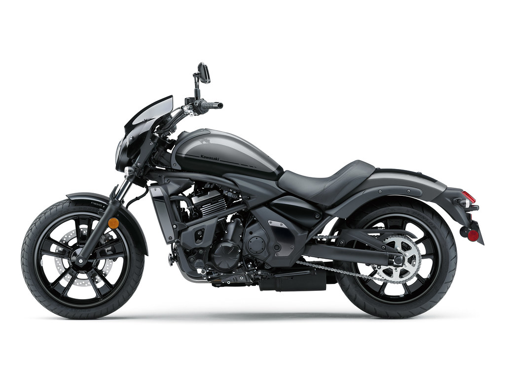 18-inch front and 17-inch rear wheels. The larger front wheel provides natural, light handling. Tyres provide the right blend of handling and grip. The Vulcan S Cafe is ABS equipped, with front 300mm front disc slowed by 2 piston callipers the rear ABS disc brake is fitted with a single piston calliper for ample stopping power.