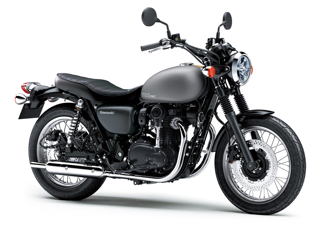 The W800 STREET is the evolution of the W family for Kawasaki. A product group that spans 50 years. Kawasakis dedication to preserving the image of the original model can be seen in the air-cooled Vertical Twin engine that meets modern emissions standards, the double-cradle frame with completely revised rigidity care of thicker pipe walls, and the carefully crafted exhaust sound of a Vertical Twin with a 360 degree crankshaft.