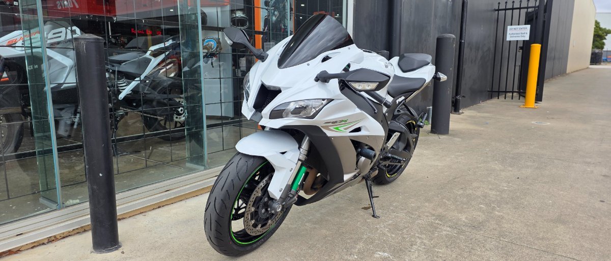 Experience the true definition of performance with the 2017 Kawasaki ZX-10R, a superbike built to dominate both the streets and the track. Brace yourself for a mind-bending ride as this machine combines power, agility, and cutting-edge technology to deliver an unrivaled performance experience. The heart of the ZX-10R beats with a relentless 998cc inline-four engine, producing an awe-inspiring 200 horsepower. With blistering acceleration and a spine-tingling top speed, this bike sets the standard for power in its class. Get ready to feel the rush as you unleash the full might of this performance beast. Fitted with crash knobs for added protection, tinted windshield and tail tidy to give it a sleek look.^With up to a 3 year mechanical protection plan and the most competitive finance and insurance packages available, as Australia?s largest motorcycle retailer no one makes it easier to purchase a used Motorcycle. Plus we can organise to have your bike delivered directly to your door anywhere in Australia through our dedicated motorcycle freighters. This Approved Used Bike comes with a 49-Point Quality Inspection, 2-Day FREE Exchange and 90 Day Mechanical Protection Plan extension when you purchase a 1, 2 or 3 year plan. Ensuring peace of mind, ease & convenience. An Approved Used Bike is the best choice in Australia for your next bike. Why buy elsewhere?