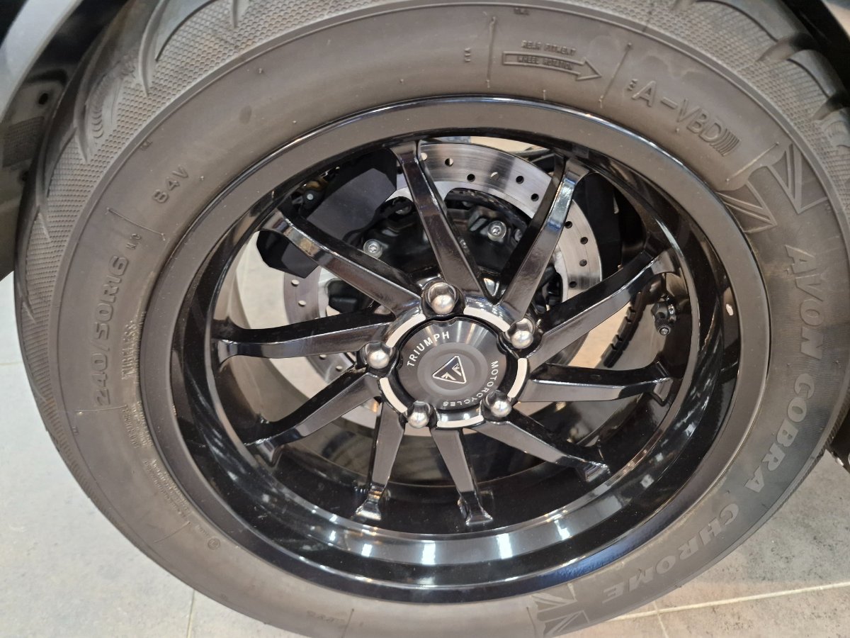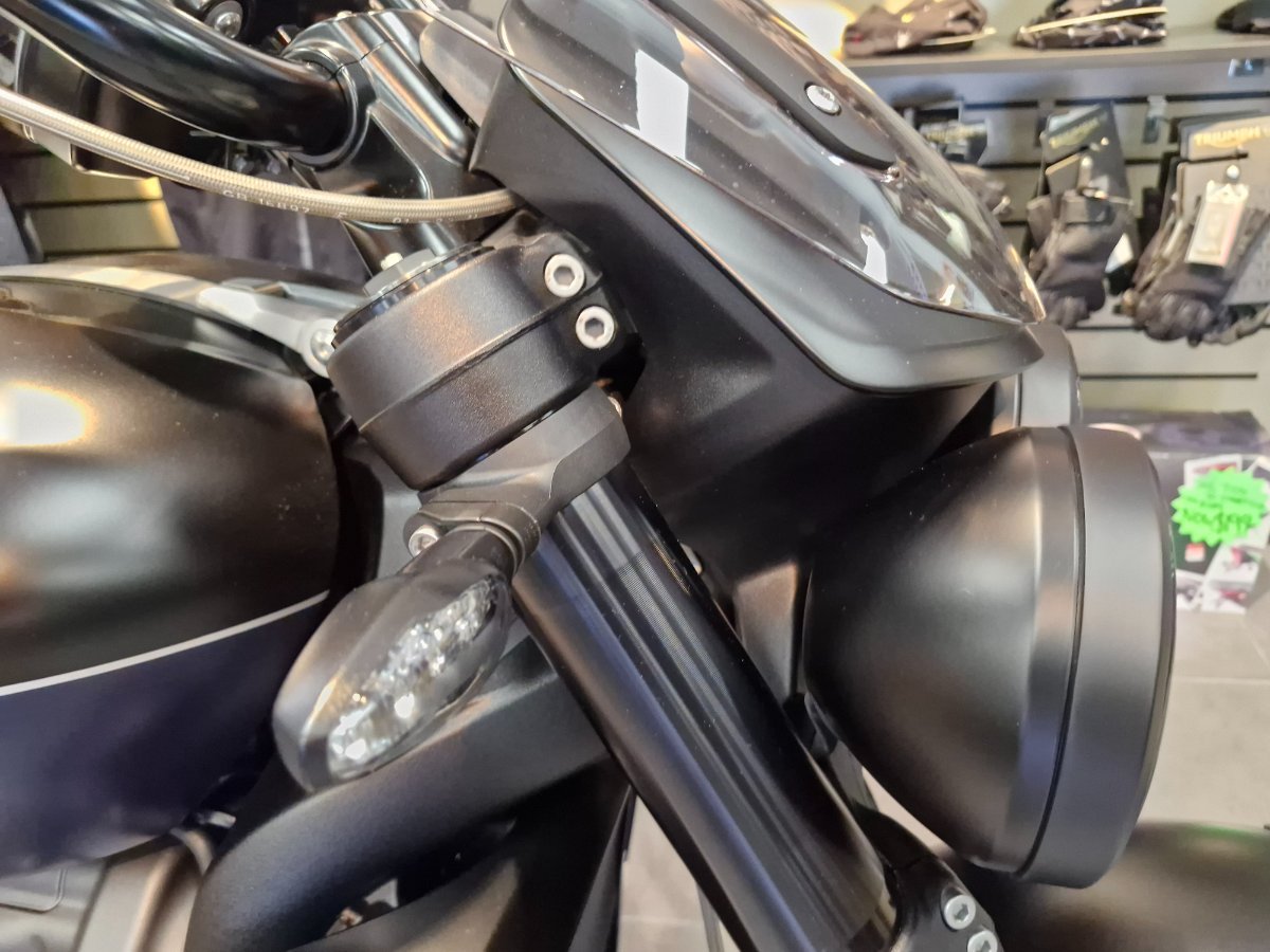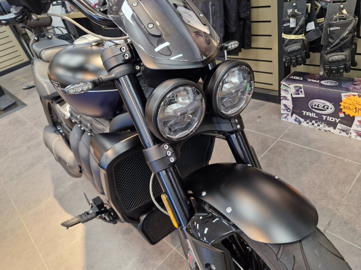a massive 2,458cc inline triple delivering record breaking torque and exhilarating real world performance. With its aggressive blacked?out styling, premium components, and unmistakable road presence, the Rocket 3 Storm is engineered for riders who want dominance on every ride.^^Unmatched Power & Performance^The Rocket 3 Storm delivers astonishing performance thanks to its 2,458cc liquid?cooled triple, producing up to 182 PS (179.5 hp) and a staggering 225 Nm (166 lbft) of torque at just 4,000 rpm