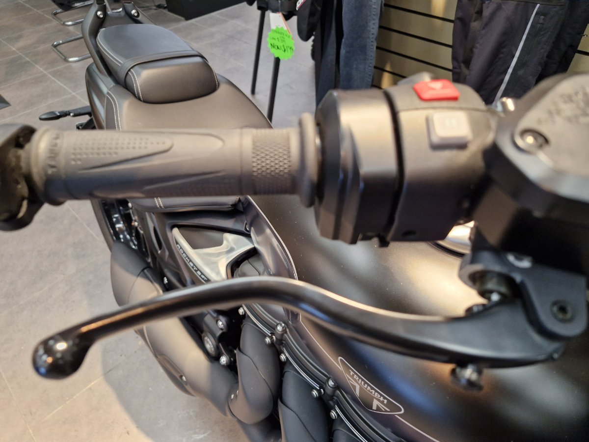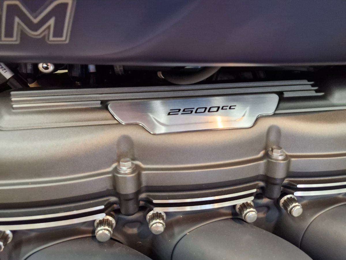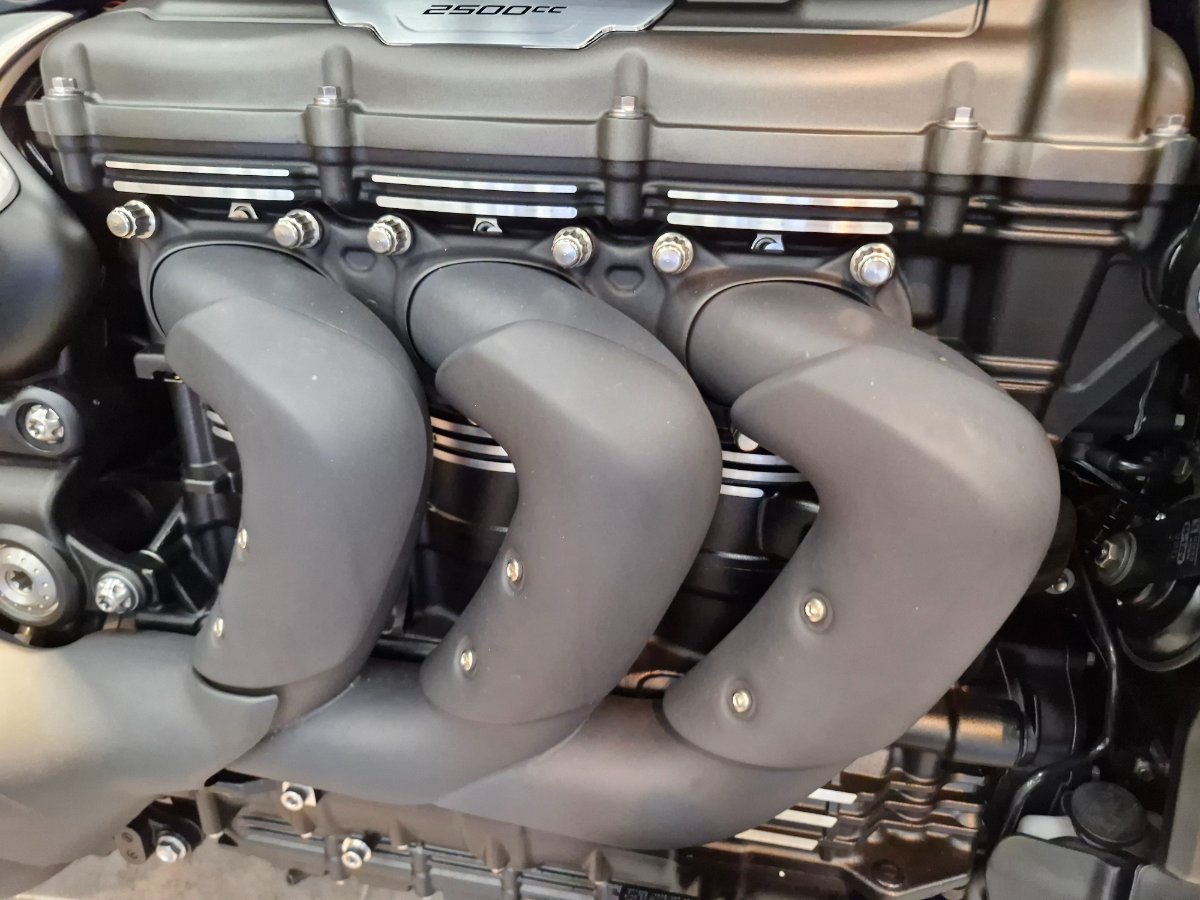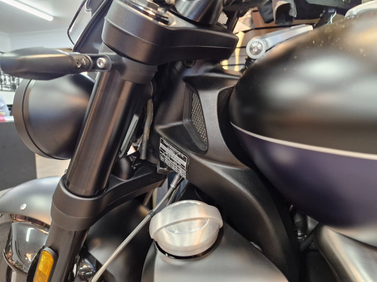 a massive 2,458cc inline triple delivering record breaking torque and exhilarating real world performance. With its aggressive blacked?out styling, premium components, and unmistakable road presence, the Rocket 3 Storm is engineered for riders who want dominance on every ride.^^Unmatched Power & Performance^The Rocket 3 Storm delivers astonishing performance thanks to its 2,458cc liquid?cooled triple, producing up to 182 PS (179.5 hp) and a staggering 225 Nm (166 lbft) of torque at just 4,000 rpm