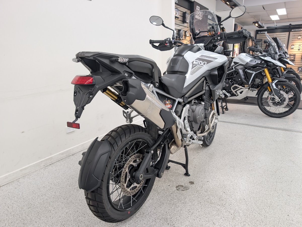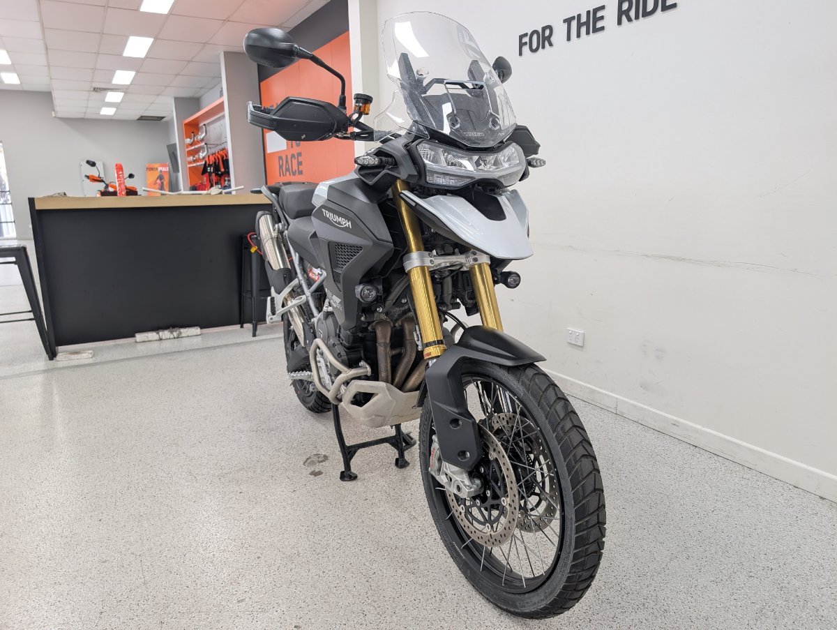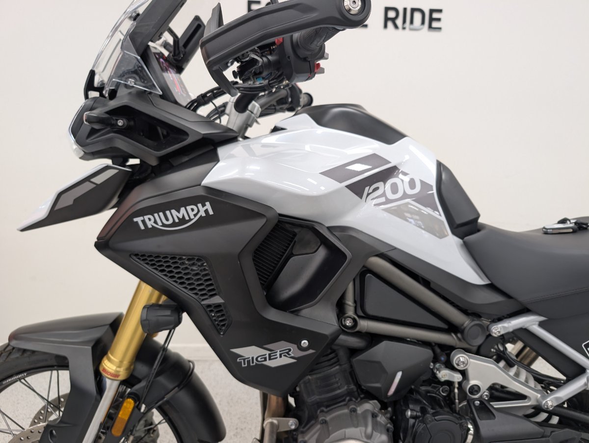 The 2022 Triumph Tiger 1200 Rally Pro is an adventure motorcycle featuring an 1160cc T-plane triple engine, a shaft-driven final drive, and a combination of semi-active Showa suspension and 21/18-inch spoked wheels for off-road capability. It includes advanced features like a keyless ignition system and a choice of ride modes with Off-Road Pro as one option. The model is designed for both long-distance touring and rugged adventure riding, with a standard 20-liter fuel tank, a claimed dry weight of 249kg, and enhanced protection features like engine bars and a sump guard. With up to a 3 year mechanical protection plan and the most competitive finance and insurance packages available, as Australia?s largest motorcycle retailer no one makes it easier to purchase a used Motorcycle. Plus we can organise to have your bike delivered directly to your door anywhere in Australia through our dedicated motorcycle freighters. This Approved Used Bike comes with a 49-Point Quality Inspection, 2-Day FREE Exchange and 90 Day Mechanical Protection Plan extension when you purchase a 1, 2 or 3 year plan. Ensuring peace of mind, ease & convenience. An Approved Used Bike is the best choice in Australia for your next bike. Why buy elsewhere?