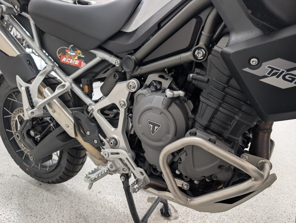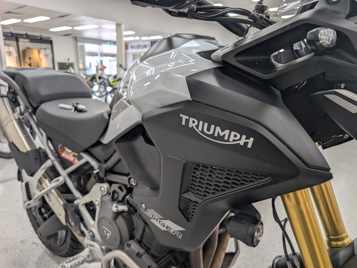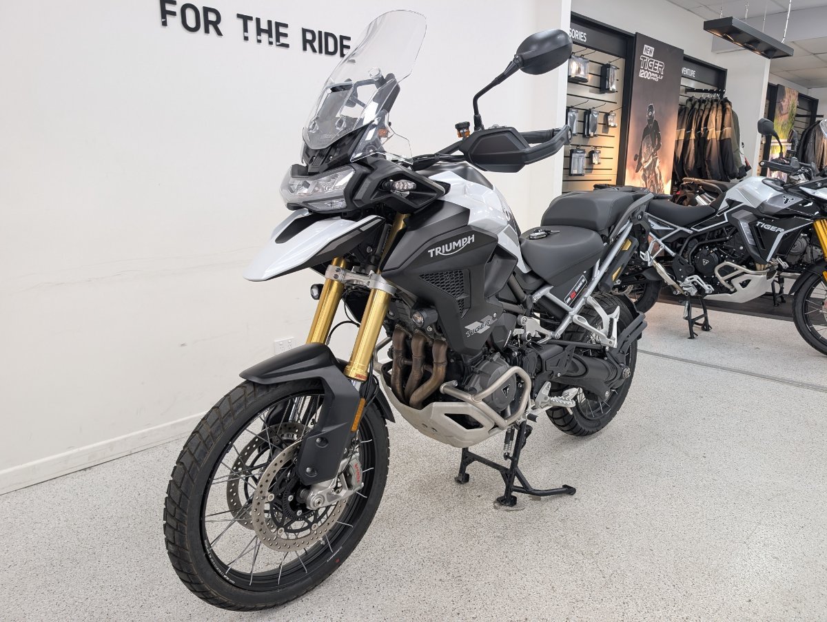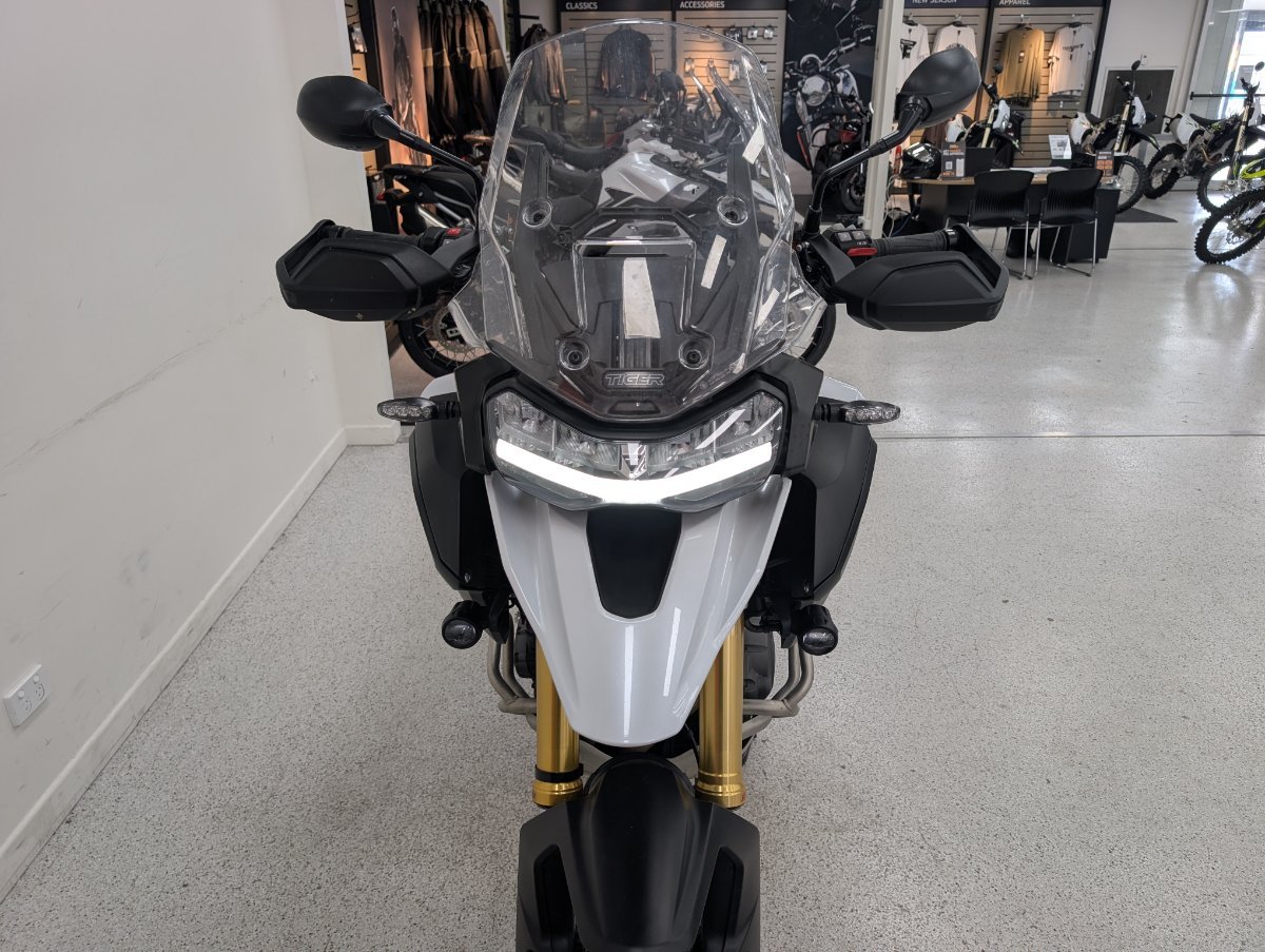 The 2022 Triumph Tiger 1200 Rally Pro is an adventure motorcycle featuring an 1160cc T-plane triple engine, a shaft-driven final drive, and a combination of semi-active Showa suspension and 21/18-inch spoked wheels for off-road capability. It includes advanced features like a keyless ignition system and a choice of ride modes with Off-Road Pro as one option. The model is designed for both long-distance touring and rugged adventure riding, with a standard 20-liter fuel tank, a claimed dry weight of 249kg, and enhanced protection features like engine bars and a sump guard. With up to a 3 year mechanical protection plan and the most competitive finance and insurance packages available, as Australia?s largest motorcycle retailer no one makes it easier to purchase a used Motorcycle. Plus we can organise to have your bike delivered directly to your door anywhere in Australia through our dedicated motorcycle freighters. This Approved Used Bike comes with a 49-Point Quality Inspection, 2-Day FREE Exchange and 90 Day Mechanical Protection Plan extension when you purchase a 1, 2 or 3 year plan. Ensuring peace of mind, ease & convenience. An Approved Used Bike is the best choice in Australia for your next bike. Why buy elsewhere?